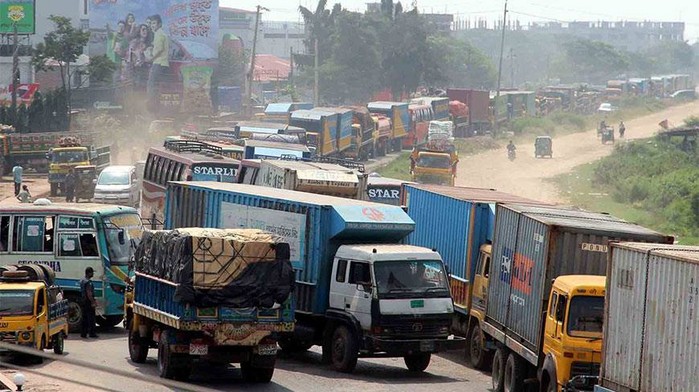| ▲극심한 정체를 보이는 다카-치타공 고속도로가 마치 우리나라 70년대 흙먼지가 날린 신작로와 비슷하다. © 환경데일리 |