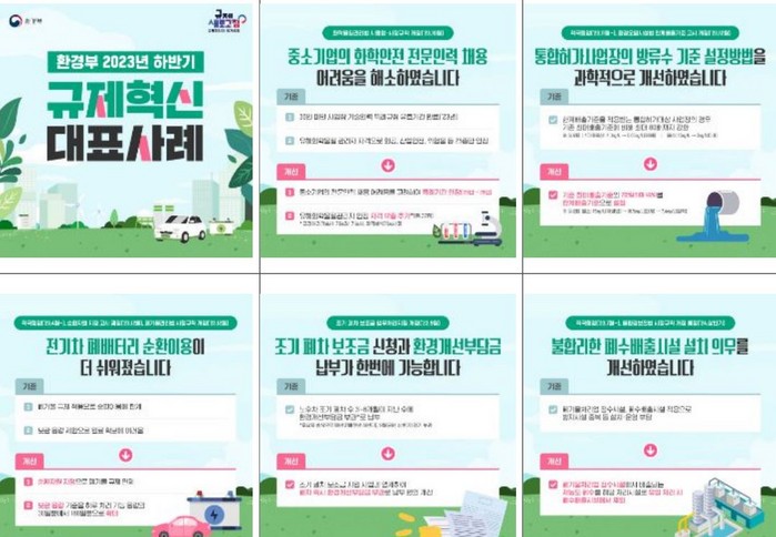 환경부는 국민생활 및 기업 활동에 밀접하지만 현실과 동떨어진 낡은 환경규제를 합리적으로 개선하고, 이 중 현장에서 체감효과가 큰 과제를 규제혁신 우수사례로 선정해 오고 있다.