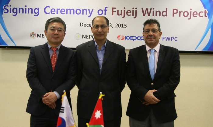 [환경데일리 김영민 기자] 한국전력은 현지시간으로 13일 요르단 수도 암만에서 요르단전력공사(NEPCO)와 총 89.1MW 규모의 푸제이즈(Fujeij) 풍력발전소 건설 및 운영을 통한 미화 5억 1000만달러 수익 규모의 전력판매계약(PPA, Power Purchase Agreement)을 체결했다.