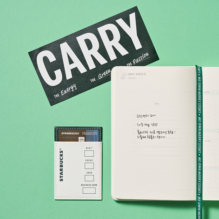이탈리안 프리미엄 다이어리 브랜드인 몰스킨과 협업한 2021 스타벅스 플래너는 '가장 스타벅스다운 플래너'를 컨셉으로, 스타벅스 고유의 색상인 그린과 사이렌 로고를 모티브로 해 깔끔하면서도 상징성을 담고자 했다.