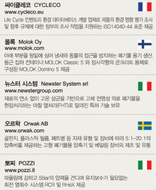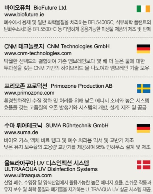 붉은 수돗물 사태를 종식시킬 정수 공급 및 수처리 솔루션 분야와 폐기물 및 폐수 처리 분야에서도 혁신적인 기술을 가진 유럽 기업이 참가한다.