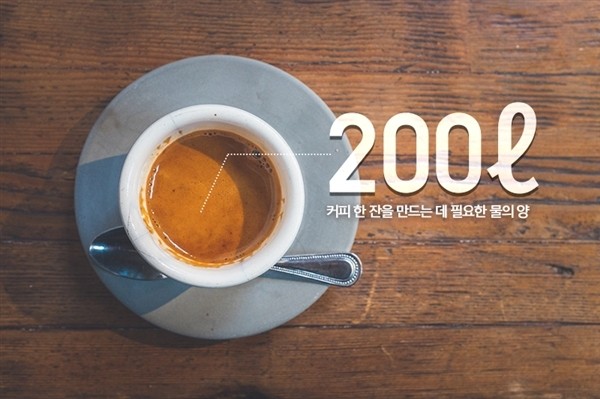 커피콩 재배에서부터 수확, 운반 등의 과정을 거쳐 우리의 커피반에 담기기까지 들어가는 물은 무려 1000배에 달하는 200ℓ라고 못박았다. 200ℓ에 커피 한 잔으로 소비되고 있는 셈이다.