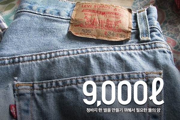 우리의 옷장도 문제를 지적하고 있다. 우리의 패션과 쇼핑 습관 역시 많은 물이 버려지고 있다. 환경 잡지 Ensia에 따르면, 티셔츠 한 장을 만들기 위해 2500ℓ의 물이 사용된다고 밝혔다. 이는 화장실 변기 물을 무려 200번이나 내리는 만큼의 양이라고 하니 충격적이다.