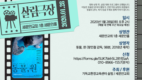 '2020년 1월 프로그램'은 1월 28일 오후2시(매월 네 번째 주간 화요일 예정) 새문안교회 1층 새문안홀에서 상영한다.