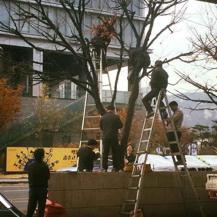 광화문 서울역사박물관 뒷편에 겨울나무 한 그릇에 장정 여덞명이 애워쌓는다.