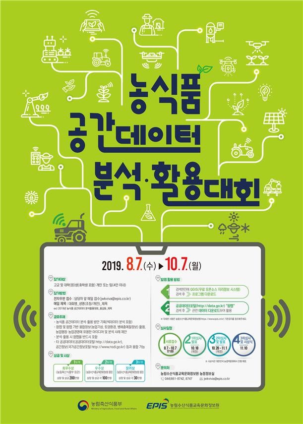 지 2개월간 진행되며, 고등학생 및 대학(원)생을 대상으로 팜맵 등 농식품 공간데이터 분석·활용에 대한 창의·혁신적인 아이디어를 접수한다.