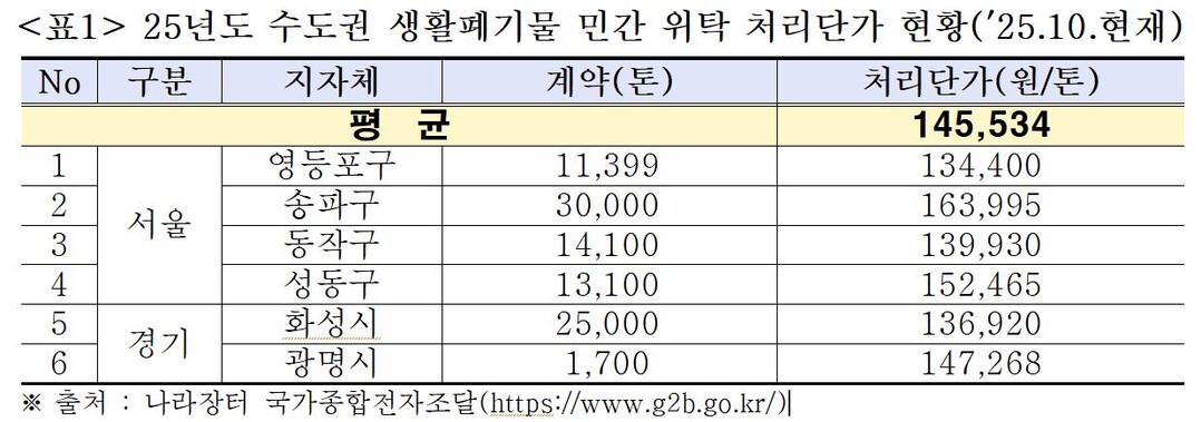 ′25년도 수도권매립지 생활폐기물 반입단가와 비교가 된다.