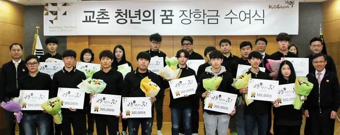 국내 대표 치킨 프랜차이즈 교촌에프앤비㈜가 경기도 오산 교촌에프앤비㈜ 본사에서 '청년의 꿈'10기 장학금 시상식을 진행했다고 24일 밝혔다.
