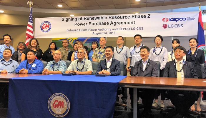 한전에 따르면 24일 오전 10시(현지시간) 괌 공공요금위원회 회의실에서 괌 전력청과 60MW 규모 태양광 프로젝트 전력판매계약을 체결했다고 밝혔다.