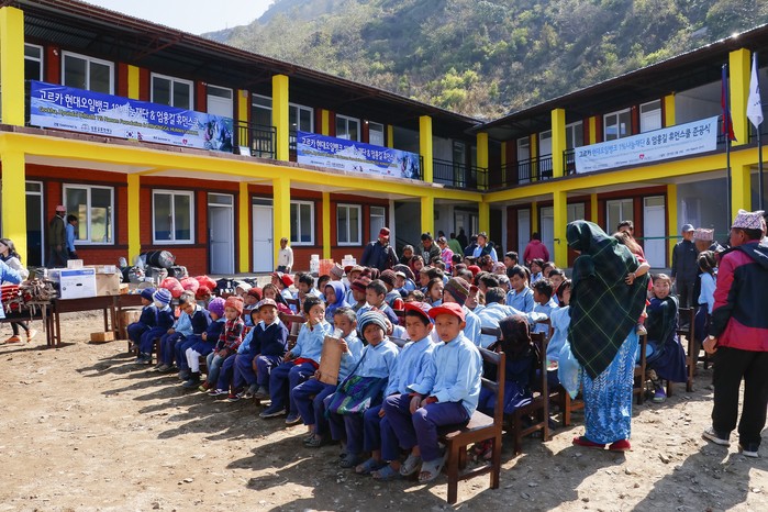 20일 현장에서 열린 준공식은 이용대 현대오일뱅크 상무, 고인수 현대오일뱅크 1%나눔재단 사무국장, 이재후 엄홍길 휴먼재단 이사장과 엄홍길 상임이사를 비롯 고르카 중학교 학생과 교사, 주민 등 총 200여 명이 참석했다.