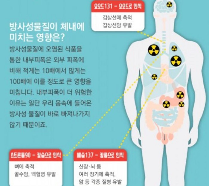 원전이 터진 직후 1년 동안은 일본산, 북태평양산 수산물과 농산물이 국내에 들어왔다. 후쿠시마 원전사고 이후 지금까지 하루 300톤의 방사능 오염수가 바다로 유출되면서 태평양까지 방사능에 오염돼 일본산 수산물은 물론 태평양산에서도 지속적으로 방사성물질이 검출됐다.