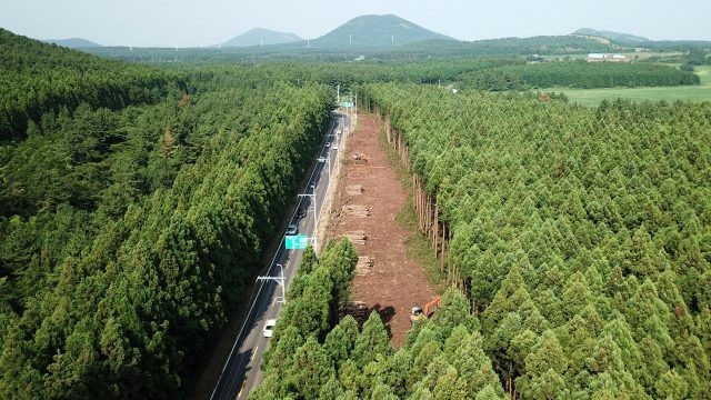 현지를 취재했던 제주도는 최근, 동부지역의 교통량 해소를 목적으로 구좌읍 송당리 대천동사거리에서 송당리 방향 비자림로를 지나 금백조로 입구까지 약 2.9km 구간에 대해 도로확장 공사를 시작하다, 여론에 몰매를 맞고 멈췄다.