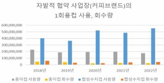 다회용컵 사용 카페를 확대하는 정책을 유지하면서 불가피하게 사용된 1회용컵에 대해서는 보증금제를 적용해 1회용컵 회수와 재활용률을 높이겠다는 것이다.