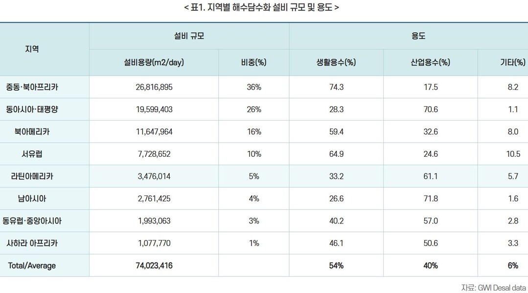 중동국가, 아프리카 대륙, 동남아시아권까지 해수담수화 및 하폐수 재활용수 기술력에 눈을 돌리면서 해수담수화 기술이 고개를 들고 있다.