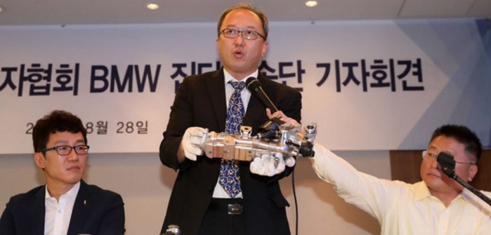 한국소비자협회는 폭스바겐 배기가스 고의적인 조작 사태이후 2번째로 소송지원단을 꾸린 가운데 프레스센터에서 기자회견을 통해 "BMW 차량 화재 원인은 배출가스의 감소를 위해 주행 중에도 바이패스 밸브를 열리게 하는 위험한 전자제어장치(ECU) 세팅"이라고 주장했다.