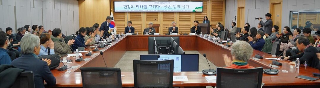 발제는 '다시 자연으로 우리가 만나야 할 한강'(송미영 동국대 교수), '이제 시민과 함께 가꾸고 사랑하는 한강'(염형철 시민의한강 공동대표), '여기 공존의 방법 한강법과 한강재단(김상철 시시한연구소 공동소장)이 각각 발표했다.