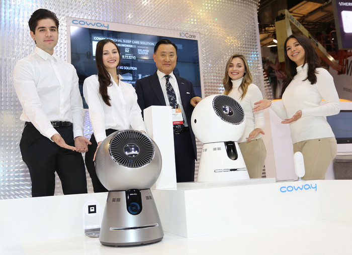 이번 전시회에서 세계 최초로 공기청정기에 아마존의 인공지능(AI) 음성인식 플랫폼인 알렉사(Alexa)를 연계한 코웨이 북미향 공기청정기 '에어메가'를 선보이며 글로벌 공기청정기 시장 확대에 나선다. 이 제품은 '공기청정기를 켜줘', '오늘 실내공기질은 어떠니?'등의 간단한 음성 명령으로 공기청정기 작동은 기본으로 풍량 조절, 실내공기질 상태 등 사용자가 원하는 제품 조작 및 알찬 정보를 제공해준다.