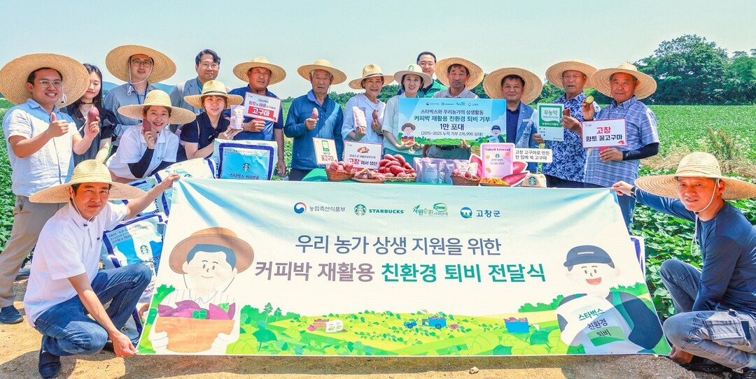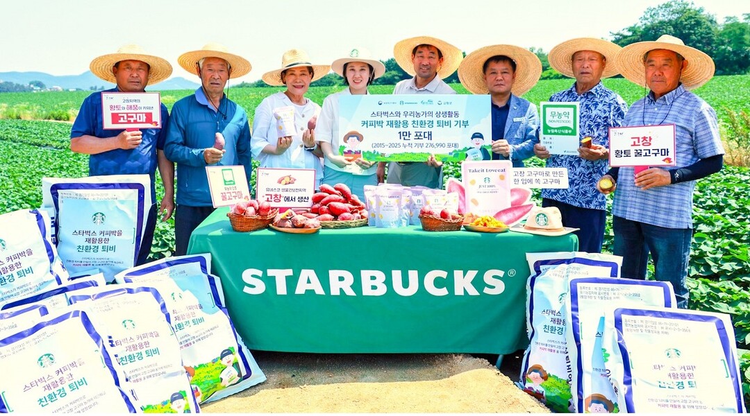 스타벅스는 6월 18일 전북 고창의 고구마 농가에 200톤에 이르는 1만 포대의 친환경 커피찌꺼기 퇴비를 전달했다.