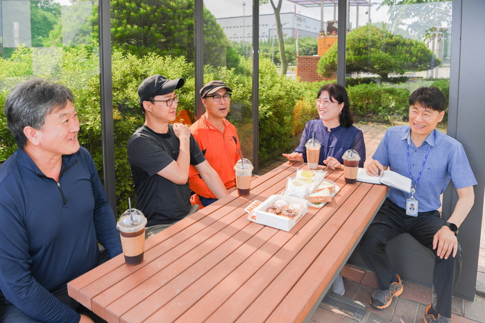 야외쉼터는 운반차량이 매립현장으로 이동하기 위해 통과하는 통합계량대 근처에 조성됐으며, 장거리 운행 등 격무에 시달리는 운반기사들이 자연 속에서 잠시 휴식을 취할 수 있도록 구성됐다.
