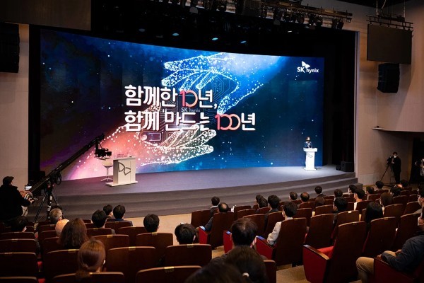 SK하이닉스는 3월 31일 이천 캠퍼스에서 '함께 한 10년, 함께 만드는 100년'을 테마로 전체 구성원이 함께 축하하는 행사를 열었다.