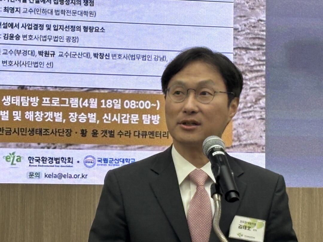 김 회장은 2006년 새만금부터 2025년 새만금 신공항 국제 판결까지 우리 환경법 이론에서 중요한 의미를 가진 판결들을 회고했다. 이자리에서 오늘 학술대회가 새만금의 과거 현재 미래를 짚어볼 기회가 됐으면 한다고 환영했다.