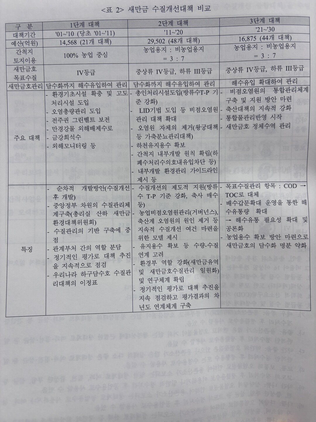 수질 오염문제에 관련, 2기 간척사업에서 시화 방조제로 인해 실패작과 달리, 새만금을 지역재생에너지 사업 등에 효력 발생할 수 있을 것이라고 했다.