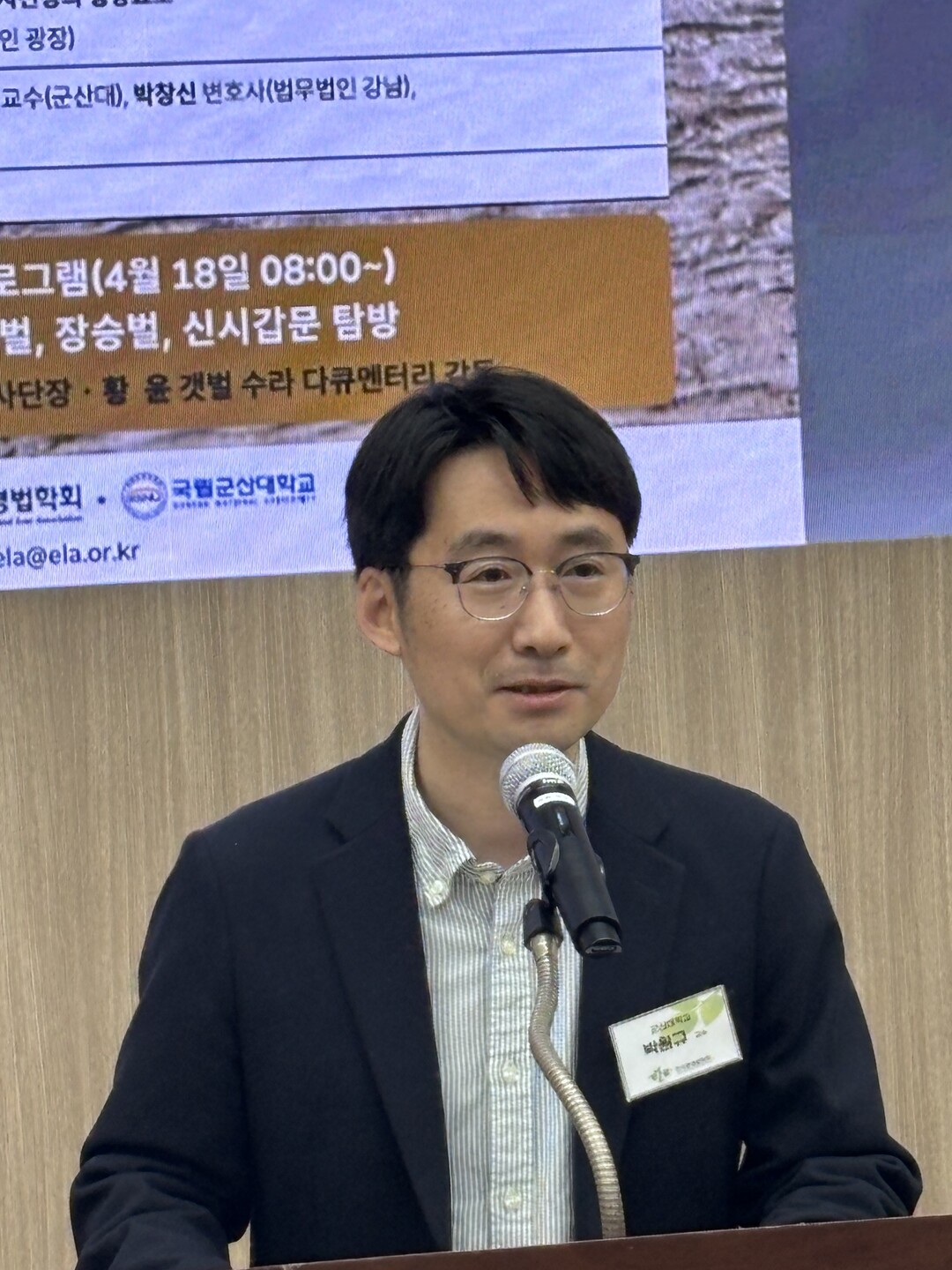 박원규 군산대 법행정경찰학부장은 환영사에서 "친환경적 새만금 조성과 신공항 건설의 환경법적 쟁점은 지역 현안을 넘어서 대한민국의 지속가능한 발전 모델을 어떻게 설계할 것인가 하는 중요한 질문과 맞닿아 있다."고 언급했다.