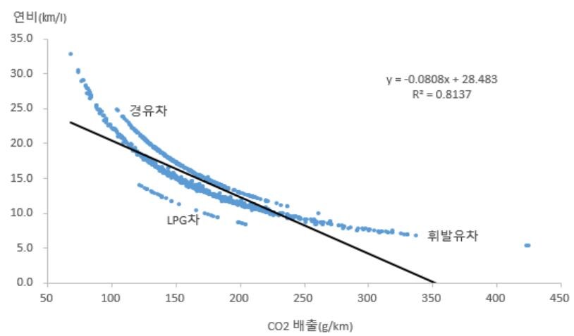 최근 5년간 사용연료별 평균연비는 휘발유차 연평균(–0.3%), 경유차(–1.0%) 등 모든 연료의 자동차에서 악화됐다. 이는 중량이 무거운 자동차 판매가 증가한 것이 주요 원인이 되고 있다.