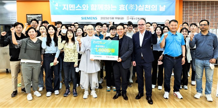 이날 40여 명의 한국지멘스 임직원 자원봉사단인 '더 나눔(The NANUM) 봉사단'은 종로구 서울노인복지센터를 찾았다. 이 자리에서 1000만원의 후원금을 출연하고 약 1000명을 대상으로 배식 봉사 활동을 펼쳤다.