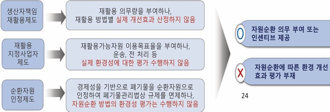 생산자책임재활용제도(EPR)를 감량·재사용까지 확대하고, 재활용률에서 폐기물 감량률·재사용률·고품질 순환자원 생산률로 전환해야 한다고 제언했다.