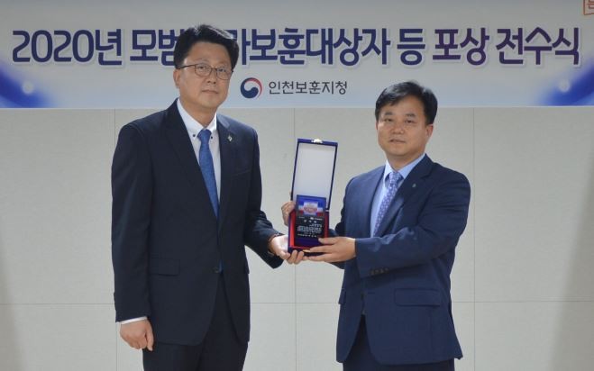 [환경데일리 이남일 기자]K-eco 한국환경공단은 호국보훈의 달을 맞아 보훈대상자의 취업지원 성과를 인정받아 6월 30일 정부인천지방 합동청사에서 국가보훈처 '모범 취업지원 기관 표창'을 받았다.