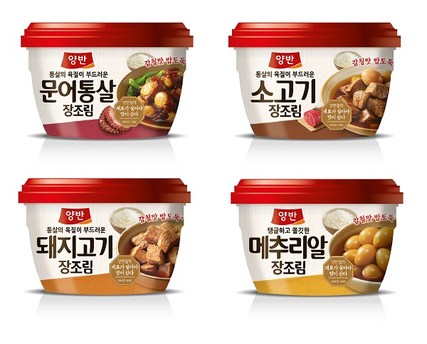 용기형 '양반 장조림'은 '문어통살 장조림', '쇠고기 장조림', '돼지고기 장조림', '메추리알 장조림'4종으로 구성됐다. 2~3인분으로 구성된 ‘양반 장조림’ 4종은 전용 용기에 담겨 따로 덜어 먹을 필요 없이 전자레인지에 그대로 데워 먹을 수 있어 간편하다.