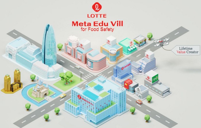 '롯데메타에듀빌'은 롯데중앙연구소 안전센터의 롯데식품안전아카데미 교육장을 메타버스로 구현한 공간이다. 그간 롯데안전센터는 롯데식품안전아카데미를 통해 롯데 그룹사의 식품 관리자를 대상으로 매년 50회 이상 교육 진행, 1000명 이상의 교육생들을 배출해왔고 이번 시도를 통해 일방적 교육에서 벗어나 강사-수강생 간 자유롭게 의견이 오가는 소통형 교육으로 발전한다는 계획이다.