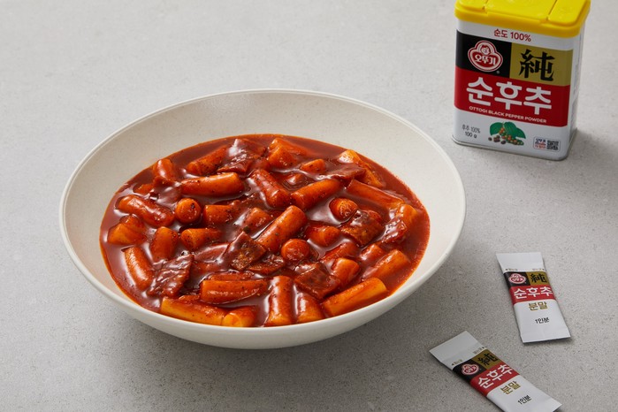 '오뚜기 순후추'를 활용해, 부드럽고 쫀득한 식감의 쌀떡과 후추를 넣어 더욱 칼칼한 '순후추떡볶이'를 출시했다.