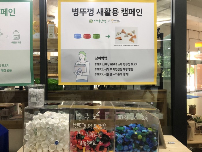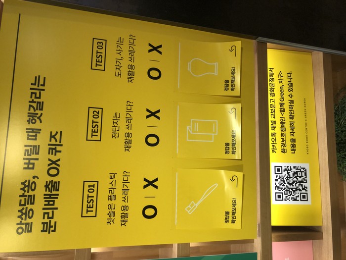 ▲지난해 교보문고와 녹색연합이 시민들에게 쓰레지 제로 생활을 할 수 있는 방법과 이해를 돕는 캠 페인성 플라스틱 거짓과 진실 홍보를 펼쳤다. |