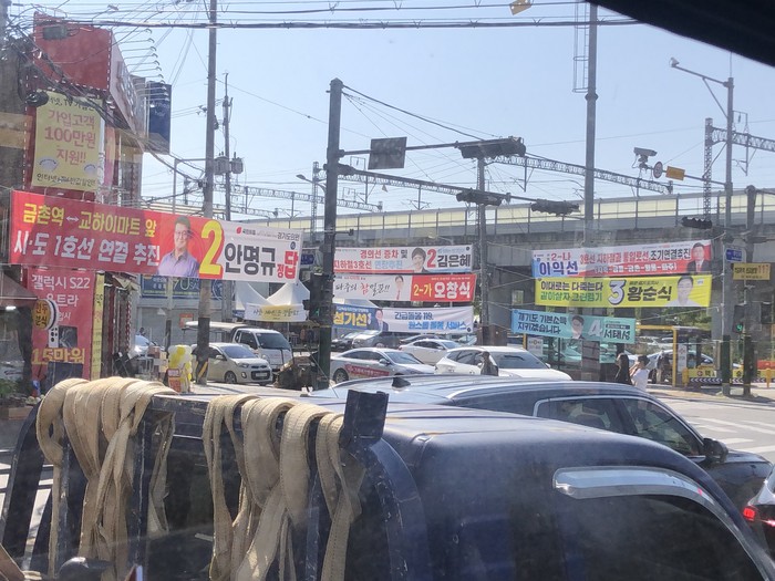 ▲선거때만 되면 거리에 마구잡이식으로 내걸린 현수막도 플라스틱류다. 선거법과 정당법을 고쳐야 이런 사회적 악습이 사라질 수 있다. |