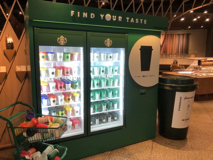 ▲스타벅스 Find Your Taste 고객 캠페인을 알리는 다양한 색상의 컵 |