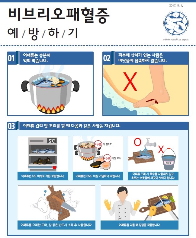 보건소 관계자는 "감염병 중에서도 치사율이 매우 높기 때문에 감염예방과 신속한 대처가 중요하다."며, "어패류는 85℃ 이상으로 익혀먹고 피부 상처가 있을 경우 바닷물과의 접촉을 피하는 등 감염 예방 수칙을 지켜줄 것"을 강조했다.