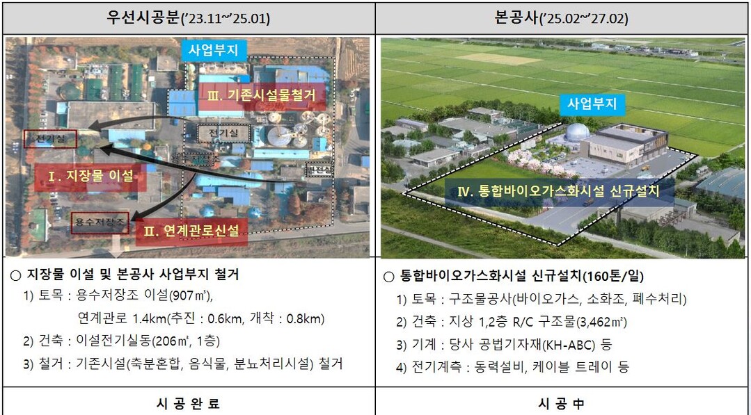현장은 경기도 파주시 문산 봉암리에 위치해 지난 30년 이상 초과한 노후 시설을 뜯어내고 최첨단 폐기물 안정화 설비를 장착해야 한다. 기존 설계대로 바이오가스를 재활용하는 친환경 공공처리시설은 2027년 2월쯤 상업 운영할 예정이다.