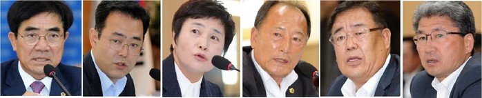 | ▲(사진 왼쪽부터)제주도의회 소속 박원철 환경위원장, 강성민 의원, 강성의 의원, 강연호 의원, 안창남 의원, 이상봉 의원 |