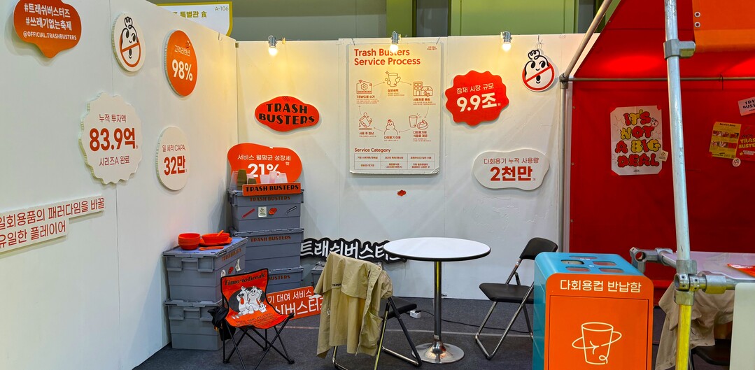 친환경 ESG가치를 가장 기본인 전시장 내에서 일회용품 사용억제다. 플라스틱컵 반입을 차단하면 텀블러 사용을 유도했다.