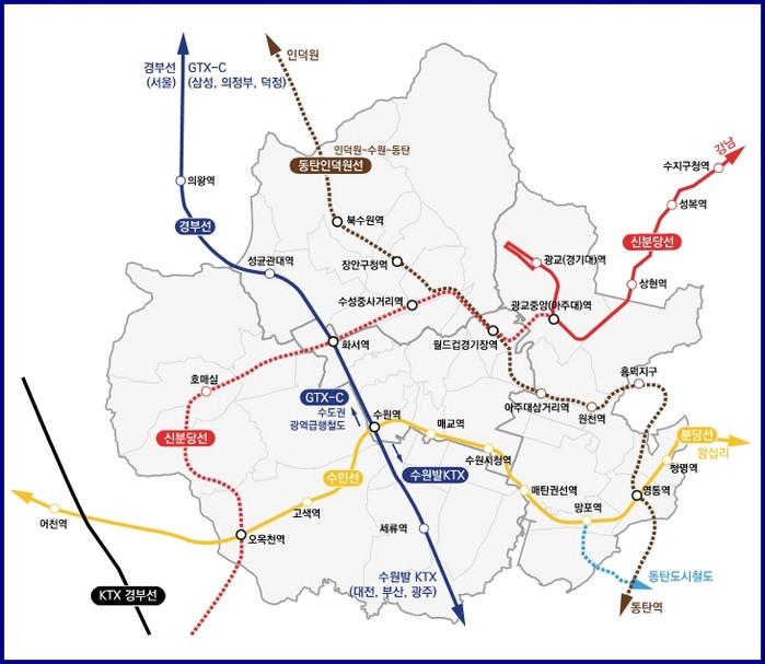 GTX-C노선을 비롯해 현재 추진 중인 모든 철도망 구축 사업이 완료되면 수원역은 '경기남부 광역철도망' 거점으로 자리매김한다.